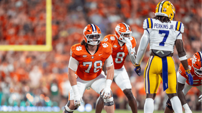 Blake Miller – OT – Clemson – Sr. – 6’7″ – 317 lbs – 34 1/4″ arms – 9 3/4″ hands – 22 years old
